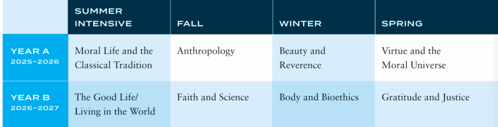During the academic year, fellows study with Witherspoon faculty in a series of online lectures and seminars on topics such as virtue and morality, bioethics, and political theory. The Program culminates in an in-person intensive summer seminar in Princeton or Philadelphia.